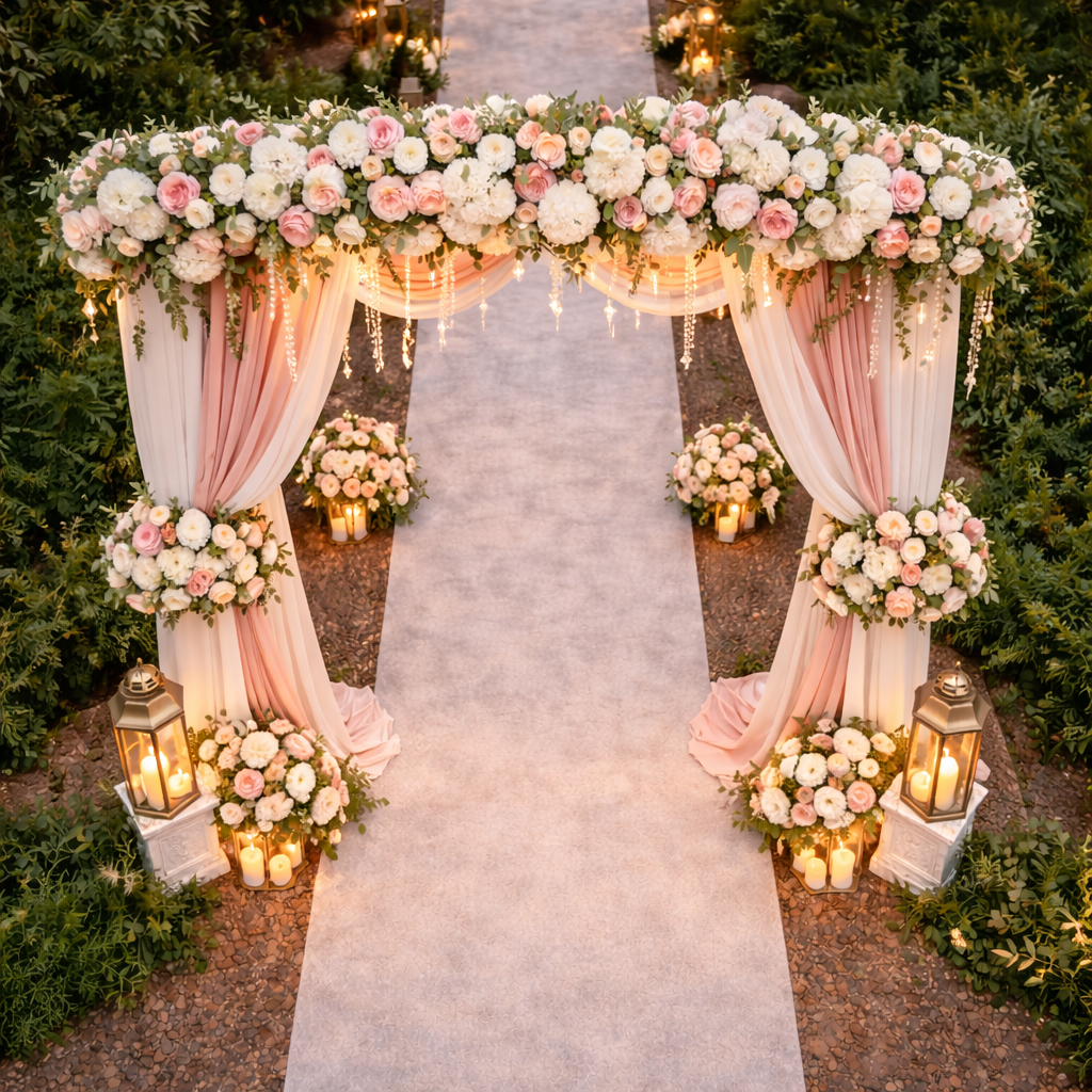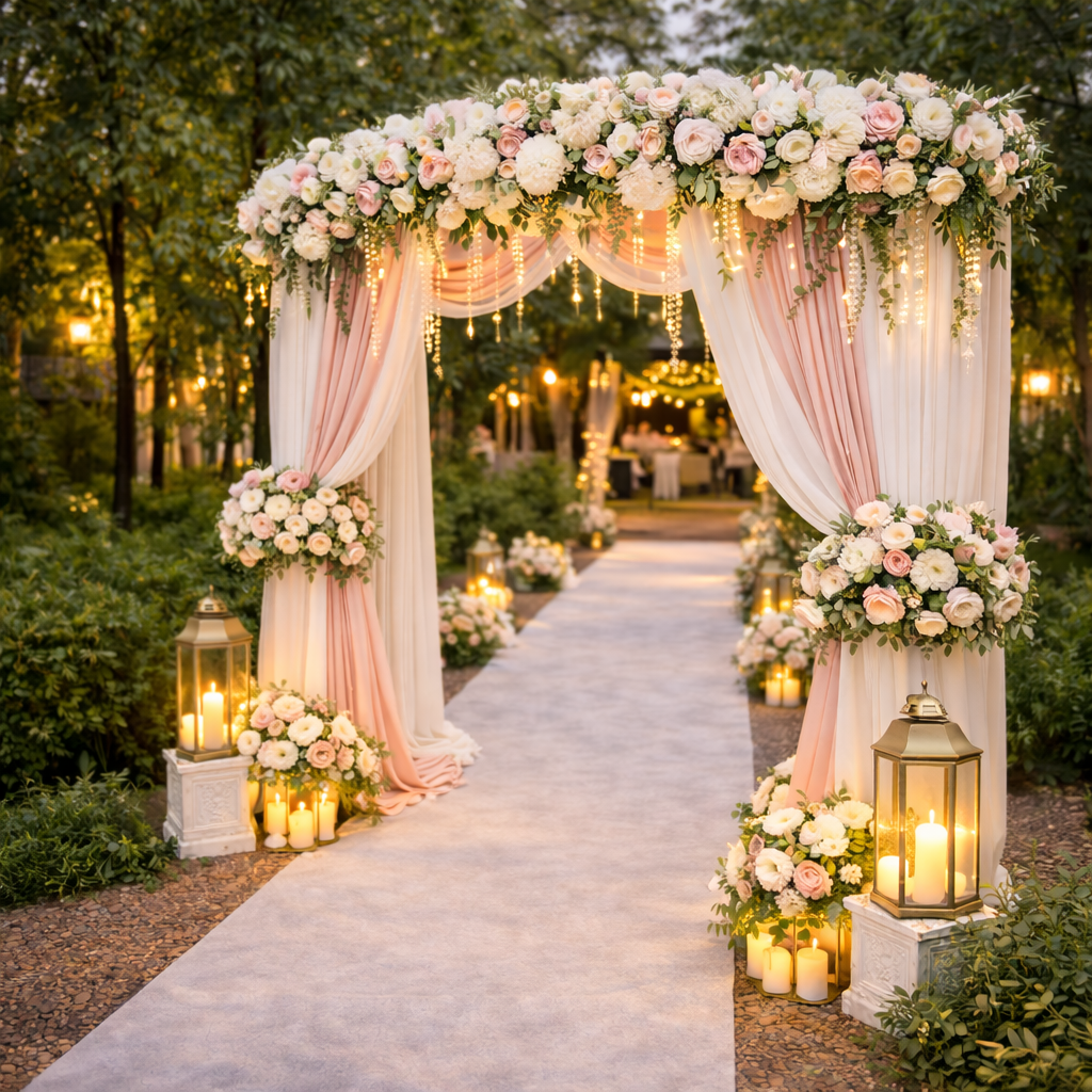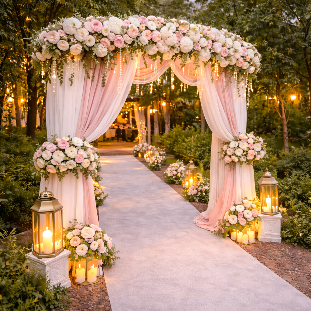 Our entrance arch decorations are designed to work well in banquet halls, hotel lobbies, gardens, lawns, and temporary event venues without damaging floors or walls. - Professional setup and dismantling