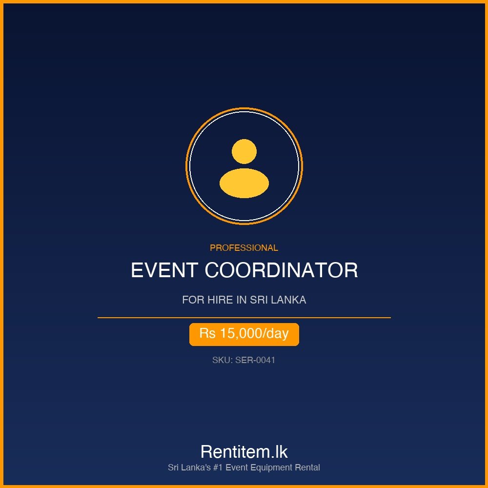 Rentitem.lk is Sri Lanka’s leading event equipment rental platform, providing professional operators alongside premium rental equipment. When you book a event coordinator through us, you get a vetted professional with proven experience — backed by Rentitem.lk’s service guarantee.