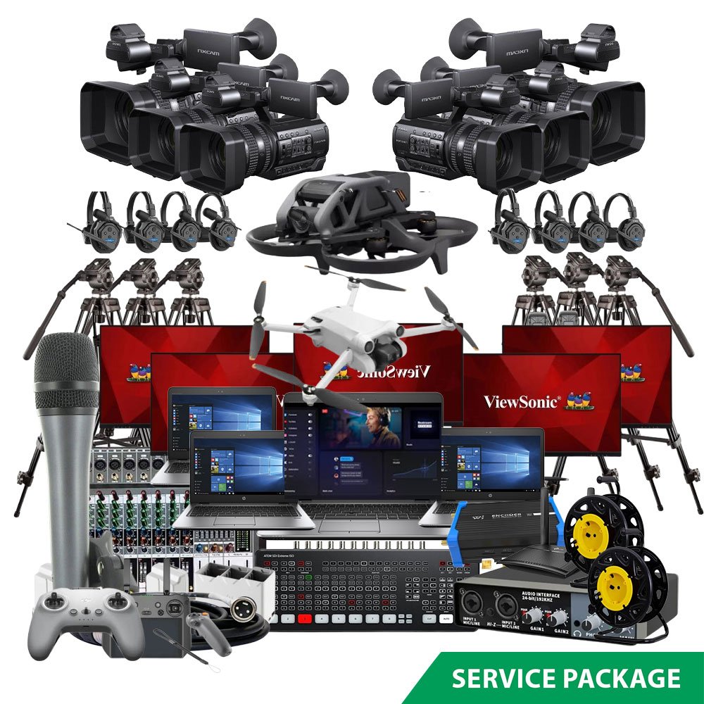 Our Mega Outdoor Multi Camera Multi Channel Drone with Live Streaming package offers an all-in-one, hassle-free solution with six Sony HXR-NX200 4K camcorders, advanced audio-visual equipment, and a 4K drone system ready for live streaming. Whether you’re broadcasting a sports event, concert, or live corporate meeting, this Mega Outdoor Multi Camera Multi Channel Drone with Live Streaming package will meet your needs with comprehensive equipment and technical expertise, including drone pilots, camera operators, and streaming professionals.