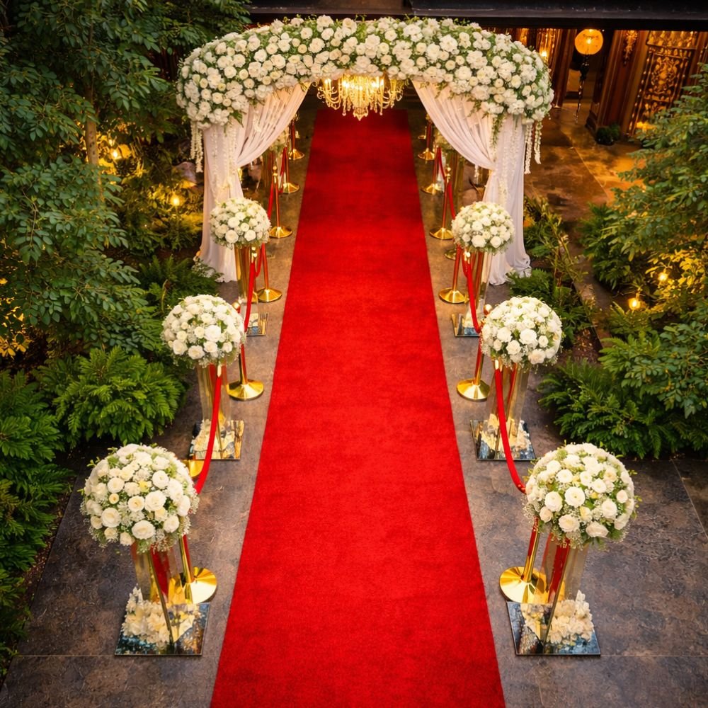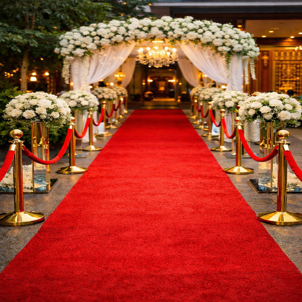 A red carpet naturally guides guests, reduces confusion at entrances, and creates a sense of importance. It helps manage crowd flow while adding a premium visual element. - Professional Setup and Removal