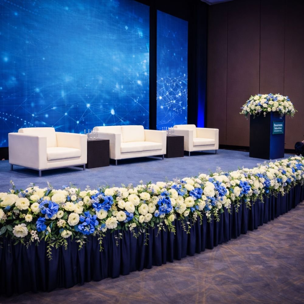 For corporate events such as conferences, product launches, award ceremonies, and seminars, stage flower decoration adds professionalism and elegance. Subtle floral designs combined with company colors help reinforce brand identity without overpowering the event visuals. In schools and universities, stage flower decoration is commonly used for prize-giving ceremonies, graduations, and annual events.